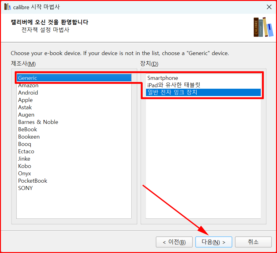 캘리버는 단순한 뷰어가 아니기 때문에 설치가 조금 복잡했습니다. 캘리버를 설치하면 전자책 관리 도구 외에도 '전자책 뷰어'가 함께 설치됩니다.