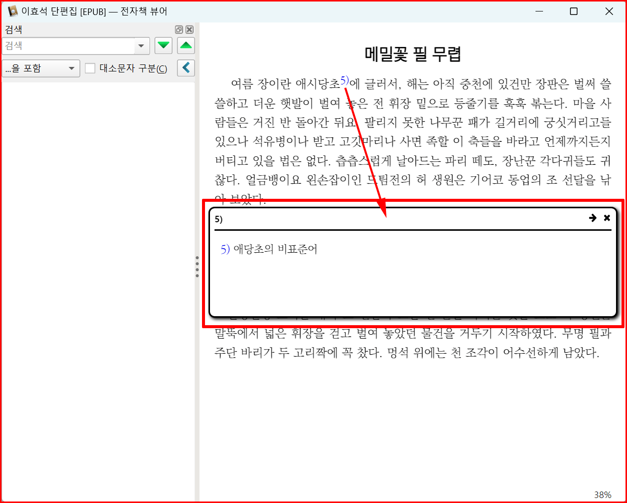 전자책 뷰어로는 캘리버 뷰어가 좋습니다. 캘리버 뷰어로 문서를 열었더니 다음과 같이 주석이 하이퍼링크된 것을 확인할 수 있네요. 눌러봅니다.