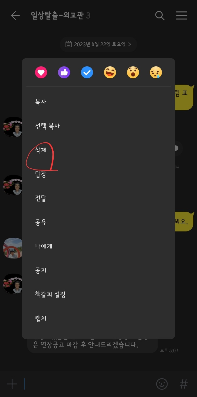 카카오톡 메시지 삭제