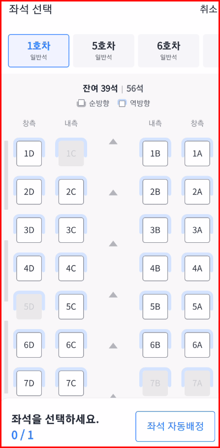 승객 타입이 바뀌면서 요금도 변경됐습니다. '바로 결제'를 진행하면 좌석은 임의로 정해집니다. 자신이 원하는 좌석을 선택하려면 '좌석 선택' 버튼을 눌러 원하는 좌석을 선택한 후 결제에 들어갑니다.