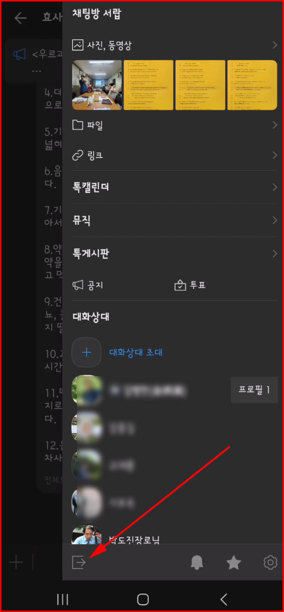 단톡방 설정에서 나가기
