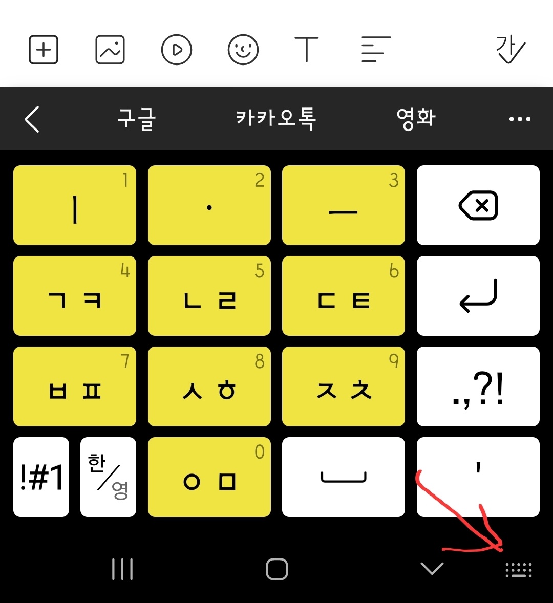 내비게이션 바에 보이는 '키보드 버튼'은 키 사용 시에만 나타납니다. 키보드 사용할 때마다 '세종대왕님 지혜'에 매번 감사드리게 됩니다. 한글이 디지털 시대 최고 언어라는 자부심을 느끼거든요.