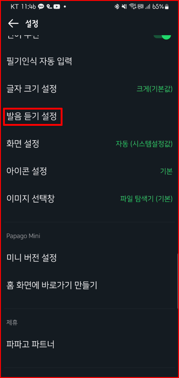 두 사람이 각각의 폰으로 파파고 대화 기능을 사용하면 더욱 편리하게 소통을 할 수 있습니다. 더욱 실감 나게 하려면 '파파고 설정'에서 '발음 듣기 설정'을 통해 성 구분을 하면 좋겠네요.