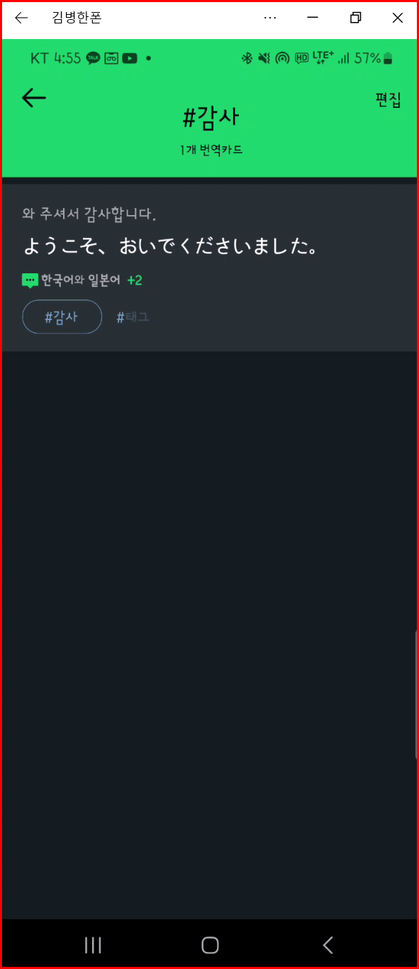 언어를 '일본어'를 선택하고 '감사' 항목의 '고맙습니다'를 택하면 일본어 번역이 나옵니다. 그곳에서 스피커를 택하면 음성으로 실행됩니다. 자주 사용하는 표현은 '별표'를 선택하여 '즐겨찾기'에 등록합니다.