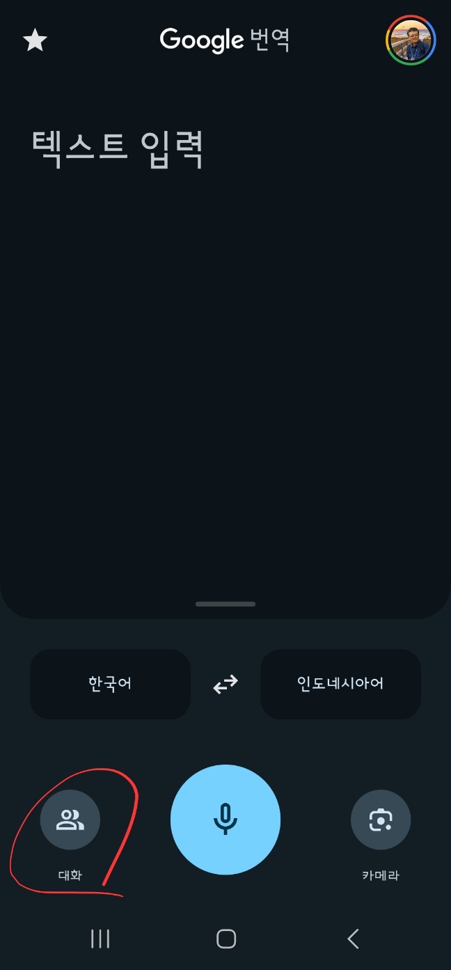 구글번역기에서 '대화'를 선택합니다.