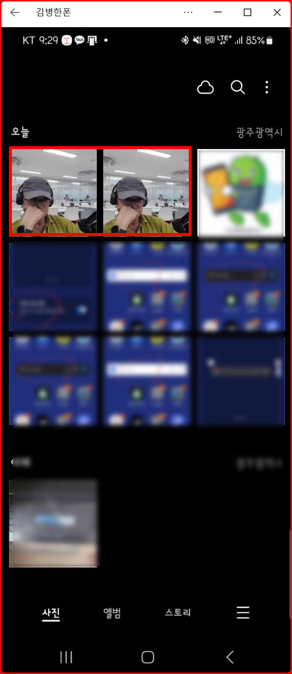 내려받기 위해서는 선택된 이미지 아래에 나타나는 '다운로드' 아이콘을 선택합니다. 원본에 비해 내려받은 파일은 일반적으로 용량이 적습니다.(물론 원본으로 사진을 보내는 경우는 해당 안됨)