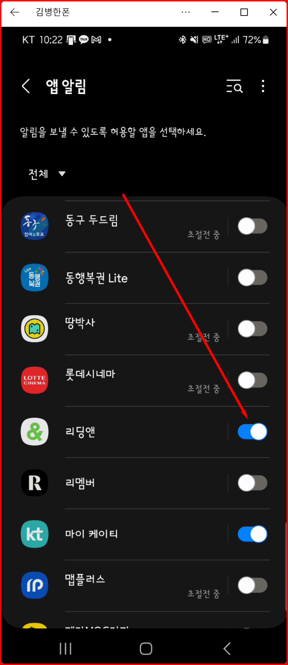 자신의 사정에 따라 어플 알림을 허용하든지 해제하든지 하면 됩니다.