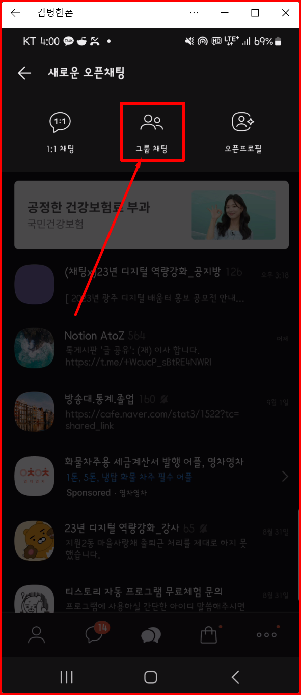 오픈채팅방의 '1:1채팅'과 '그룹채팅'