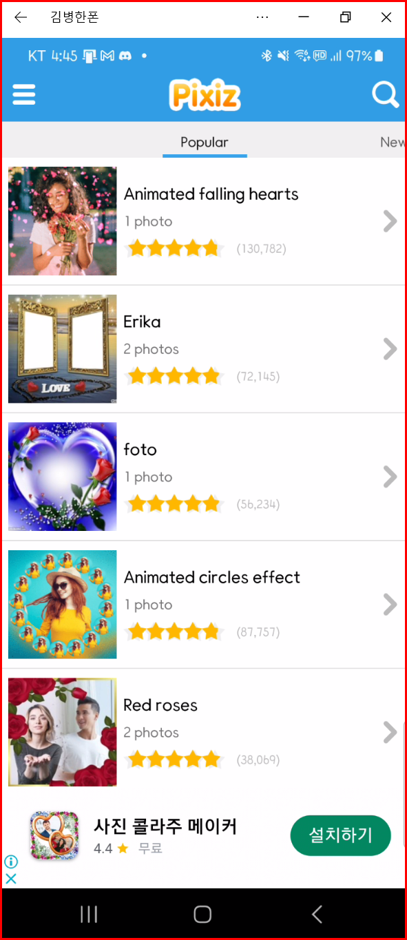 설치합니다. 비슷한 어플이 많기 때문에 어플의 종류를 확인하고 설치합니다. 포토 편집과 관련된 어플은 대단히 많습니다. 이름까지도 비슷하기 때문에 선택을 정확하게 해야 합니다. 물론 다른 프로그램을 사용할 수도 있고요. 여기서는 동천 주민분이 원하는 결과물을 만들기 위한 과정입니다.