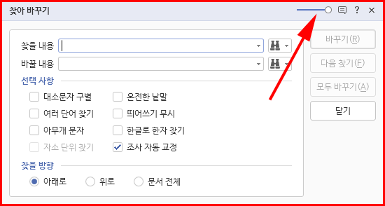 '대화상자 투명'이 필요한 경우는 본문과 관련 있는 대화창은 본문 내용을 보면서 작업을 해야 되기에 투명도가 필요했습니다. '찾아 바꾸기' 같이 본문을 참조해야 할 때 사용하는 기능입니다.