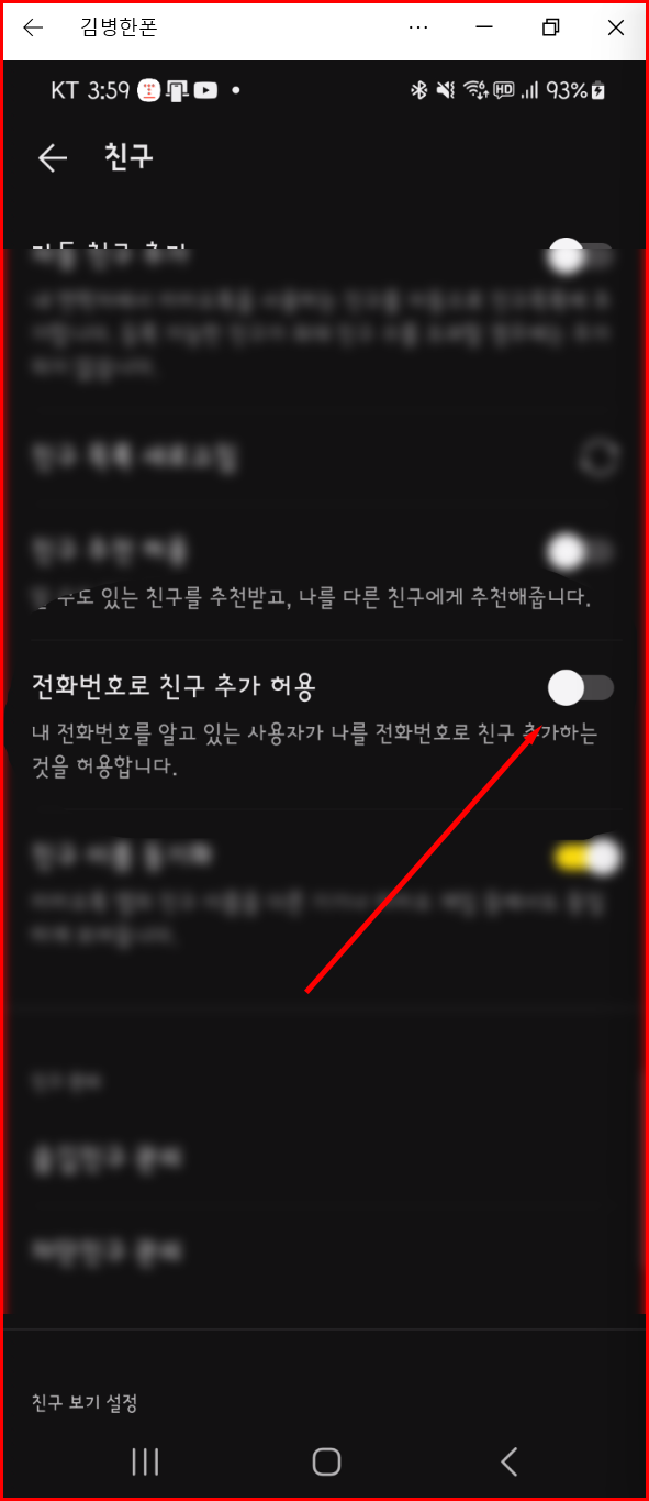 그 전화번호만으로 친구로 추가할 수 있는 방법을 막을 수 있는 방법이 있습니다. 설정에서 친구 관리로 들어가서 '전호번호로 친구 추가 허용'을 닫으면 됩니다.