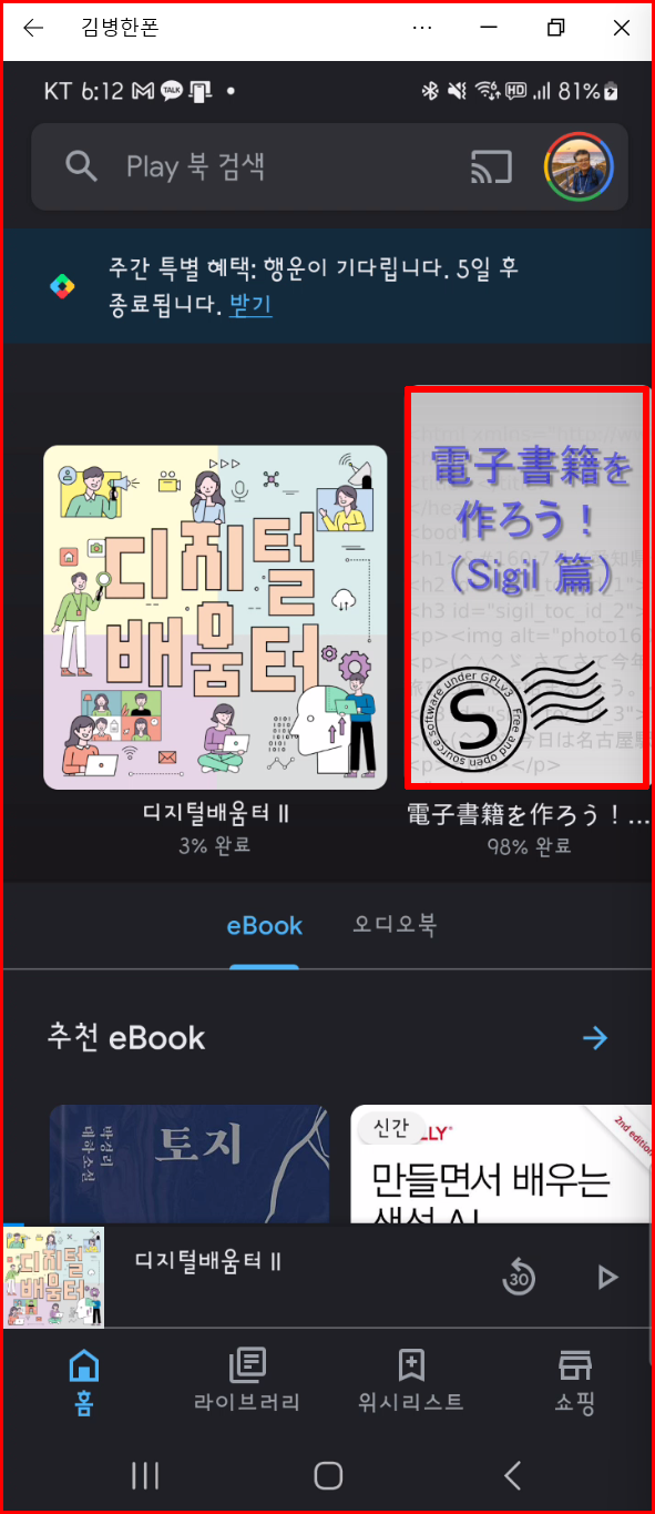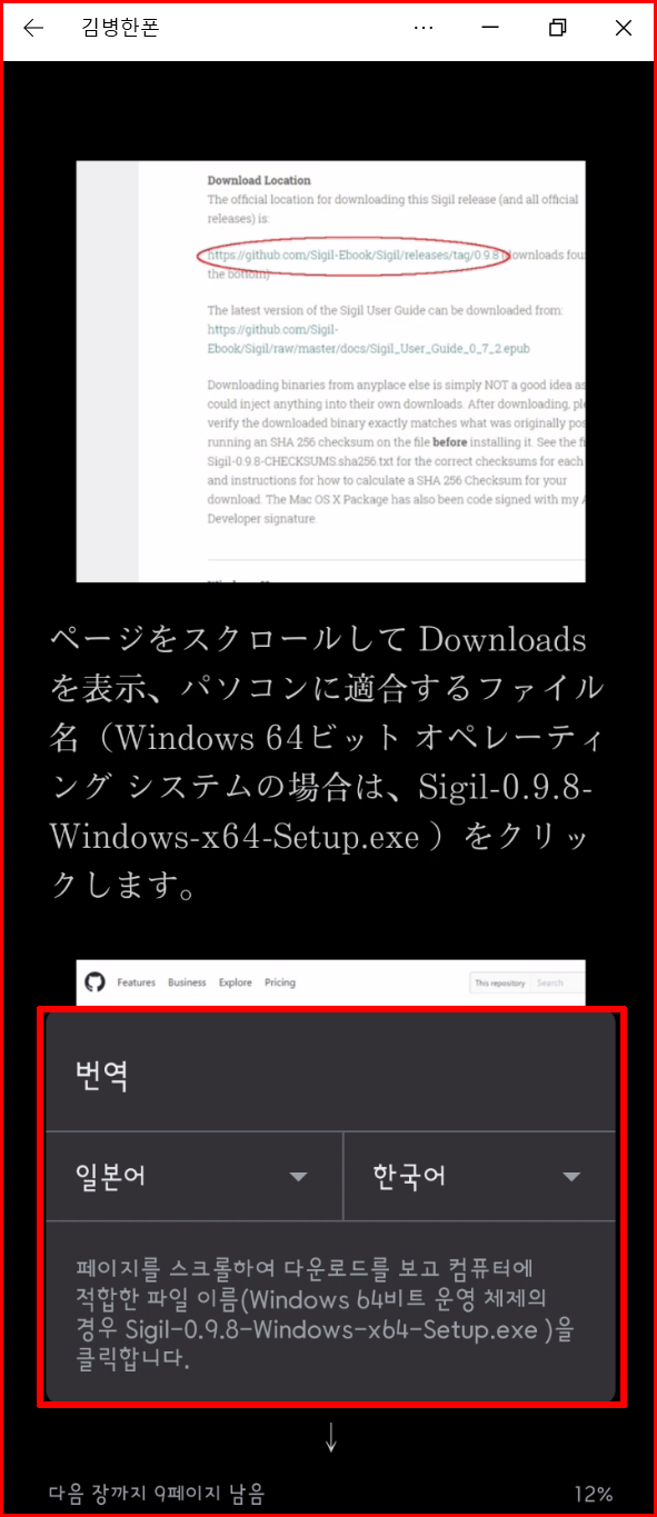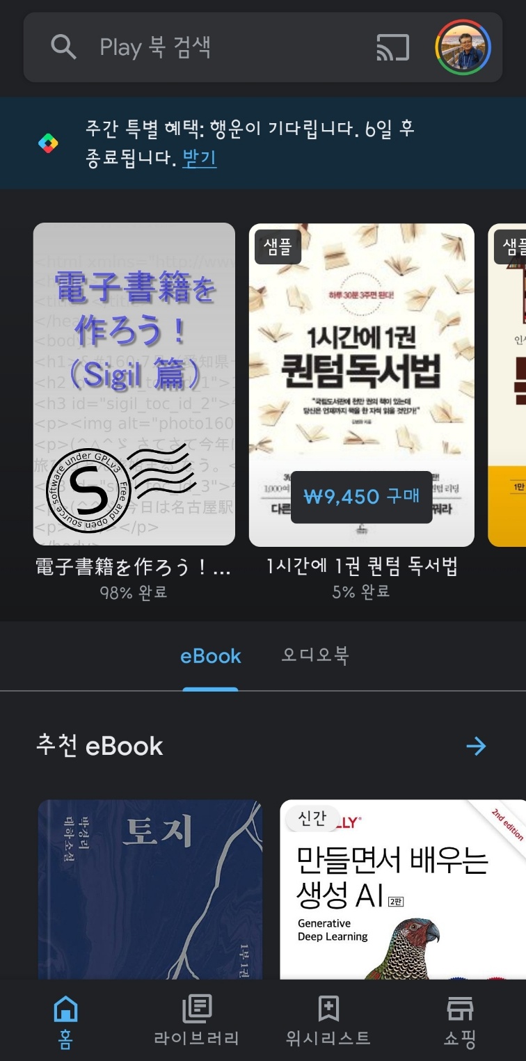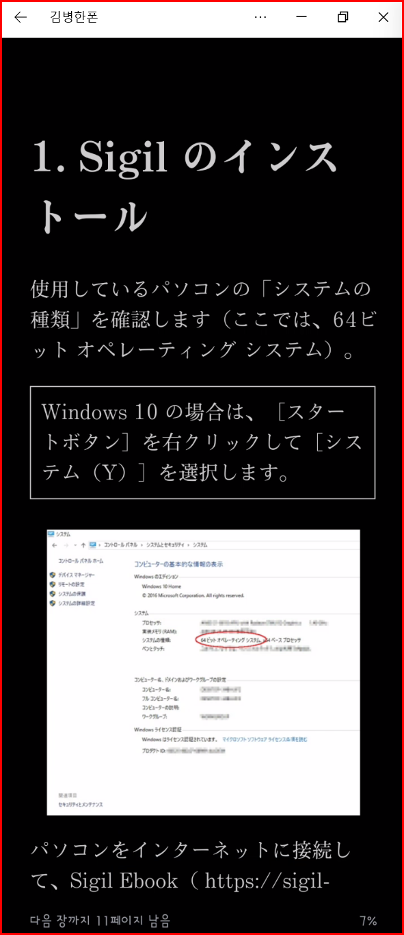 불편하다고 다른 뷰어를 사용할 수도 없습니다. 제가 구입한 도서는 '전자책을 만들자'였습니다. 일본어로 제작된 40쪽 분량의 작은 책입니다. 뷰어 테스트를 겸해 최근 진행되고 있는 'Sigil' 학습에 필요한 아이디어도 얻을 겸 구했습니다.