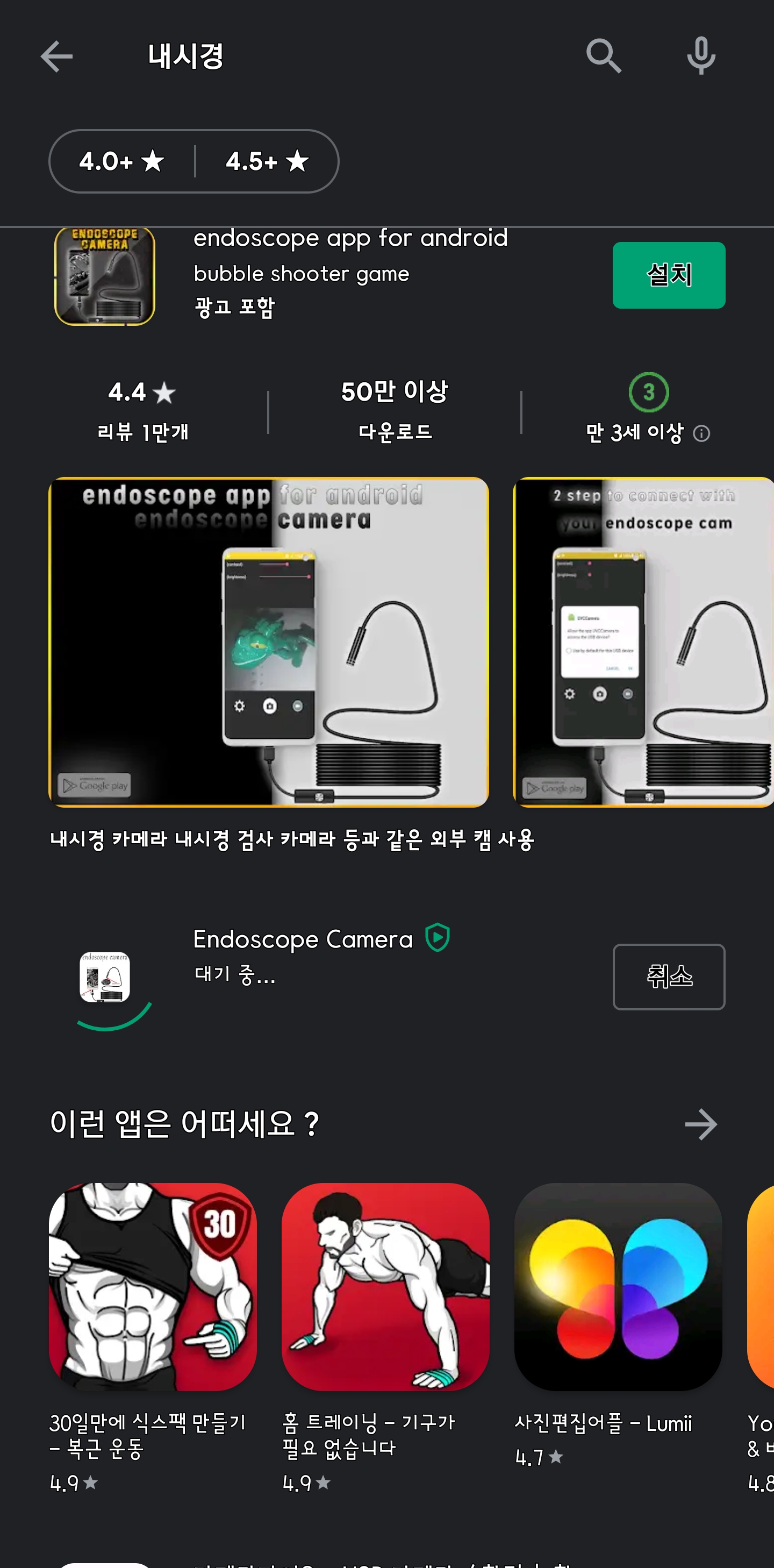 스마트폰 내시경을 이용하기 위한 어플