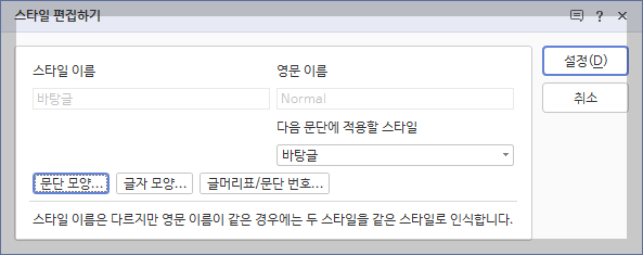 한글 문서 스타일 지정