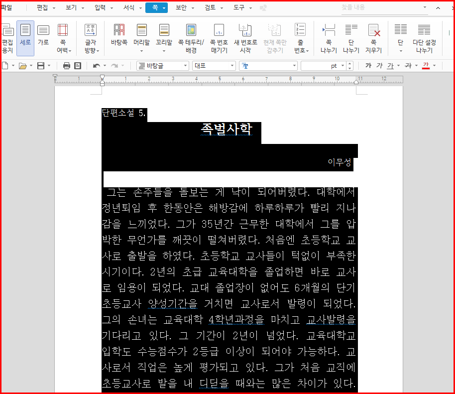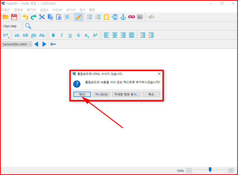 편집은 책의 소스로 되어 있는 아래한글 파일을 열어 챕터별로 불러다 편집기에 붙이기를 합니다. 이때 붙이는 단축키 'Ctrl + V'를 사용하지 않는 것이 중요합니다. 시길의 전문 편집기인 '페이지에디트' 메뉴의 '붙여 넣기'를 이용해서 '서식 없는 텍스트로 붙여 넣기'를 선택하는 것이 좋습니다.