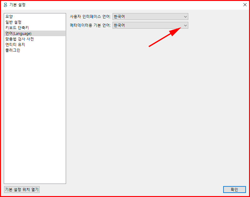 설정 네 번째, 메타데이터 언어도 변경합니다. 기본은 '영어'입니다. 메타데이터는 데이터를 설명하는 데이터입니다. 예를 들어, 사진 파일에는 촬영 날짜, 카메라 모델, 위치 정보와 같은 메타데이터가 포함될 수 있습니다. 이런 정보는 데이터를 관리, 분류, 검색할 때 매우 유용합니다. 데이터베이스에서는 메타데이터가 각 필드의 이름, 타입, 크기 등을 명시해 줍니다. 전자책의 메타데이터는 편집하는 전자책 정보를 의미합니다. 우리나라 사람을 위한 메타데이터이기에 '한국어'로 맞춥니다.