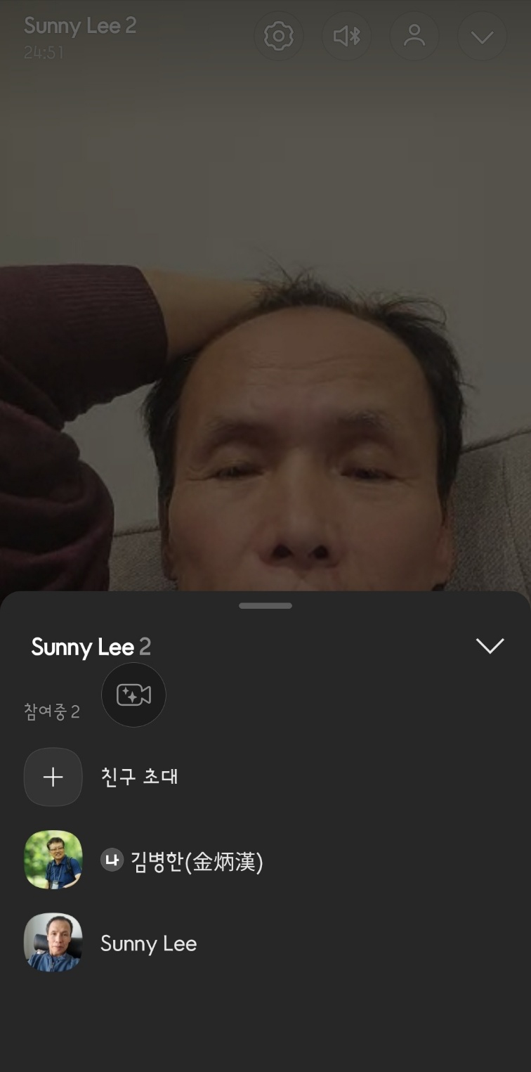 둘이 페이스톡을 하거나, 단톡방을 이용한 여러 명 페이스톡은 알고 있었습니다. 대화 중에 다른 사람을 불러들이는 방법이 있는 줄은 몰랐습니다. 뉴욕 친구와 페이스톡 중 홍길이 형님을 초대했습니다.