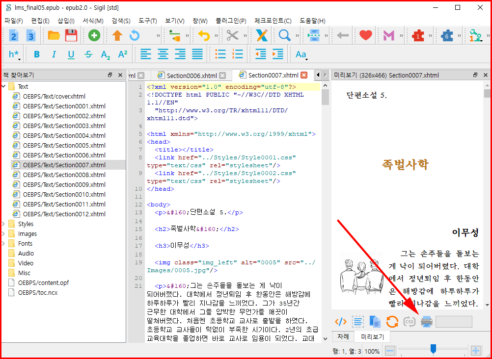 기본적으로 전자책은 함부로 콘텐츠를 돌려볼 수 없게 하는 기능이 있습니다. 그러므로 인쇄나 파일을 노출하는 것을 막는 기능들이 있습니다. 그러나 완성된 전자책을 면밀하게 검토하기 위해서는 종이로 출력해서 점검하는 것이 더 정확할 수 있습니다.