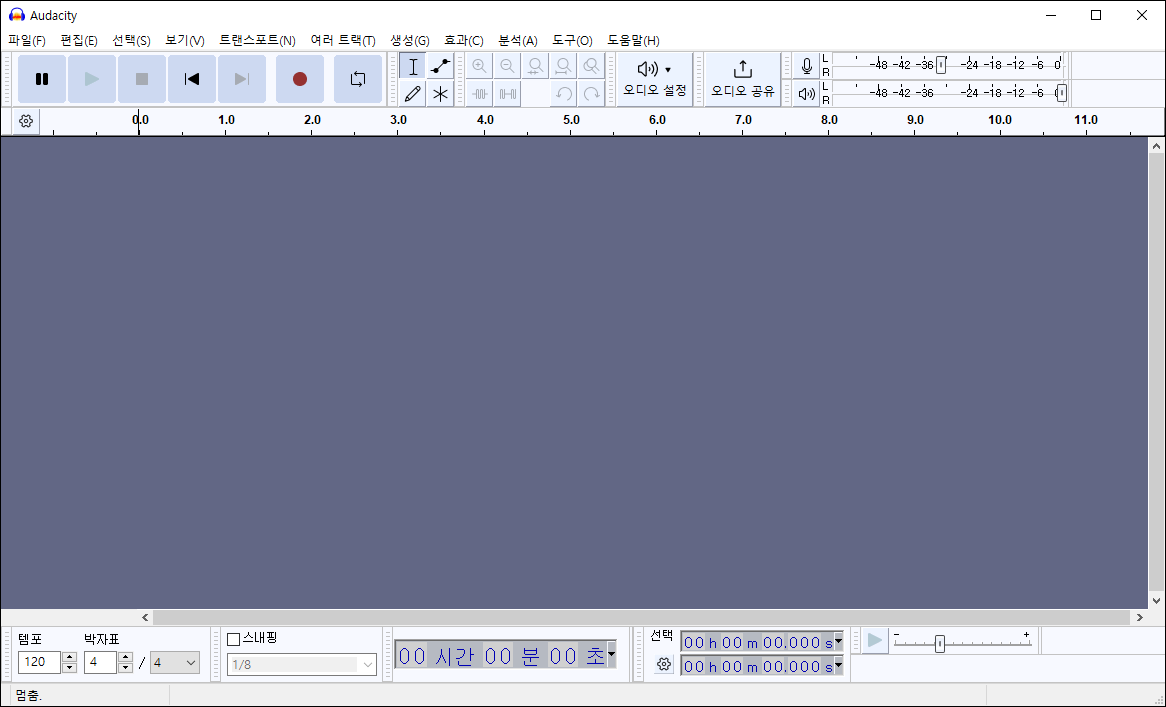 파일 > 가져오기 > 오디오를 선택하여 MP4 파일을 불러옵니다. - 또는 MP4 파일을 Audacity 창으로 드래그 앤 드롭합니다.