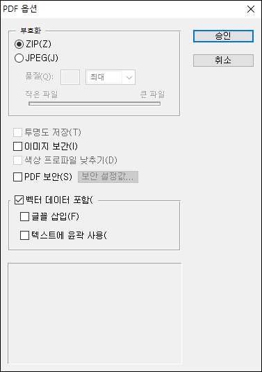 | 투명도 저장(T) | 투명 배경을 PDF에서도 유지합니다. (벡터/레이어 기반 파일일 때 유효) |