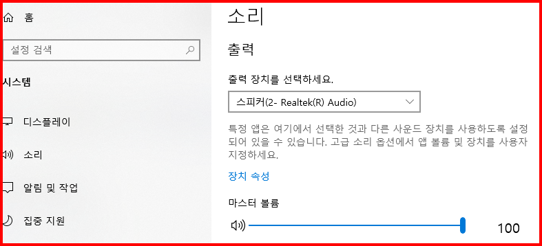 제어판에서도 보고, 사운드 장치 관리에서도 살폈는데.