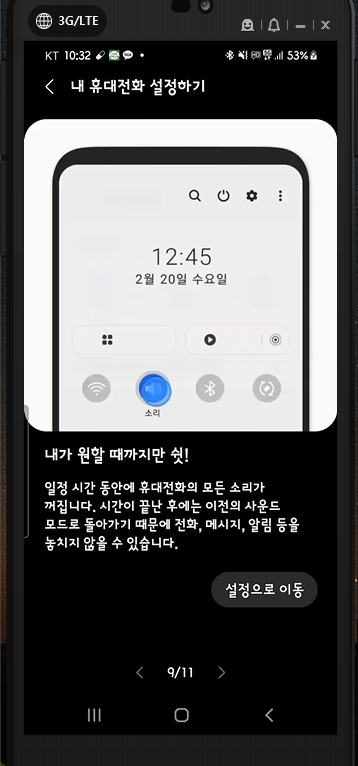 숨은 기능 알아보기에서 [내 휴대전화 설정하기]를 선택했습니다. 그 내용은 11가지 였습니다. 하나하나가 다 재미있는 기능들입니다. 이것을 여기서 다 소개하기는 힘들고 앞에서 설명한 방법으로 들어갈 수 있음을 알려드리는 것으로 만족할게요. 각 항목에 대해서는 나중에 소개할 기회를 갖겠습니다. 이번에는 이런 것이 있구나 정도 집고 넘어 가게요.