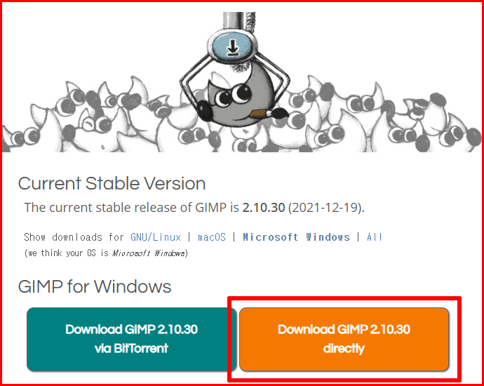 'www.gimp.org'에서 [DOWNLOAD 2.10.30] 버튼을 선택해서 내려받습니다.