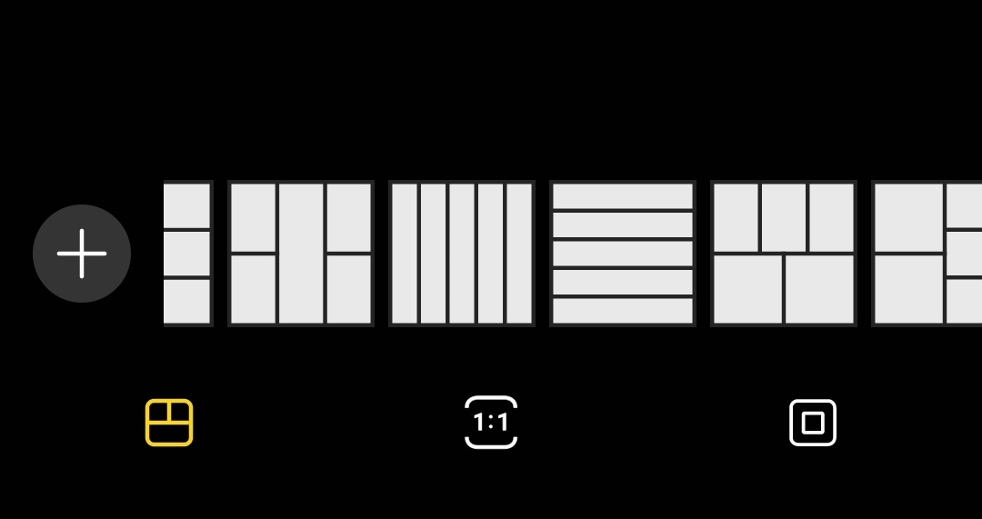 사진 또는 동영삼을 선택하고 아래에 대기 중인 '콜라주'를 선택하면 됩니다. 선택된 사진의 배치는 화면 아래 템플릿으로 변경할 수 있습니다.