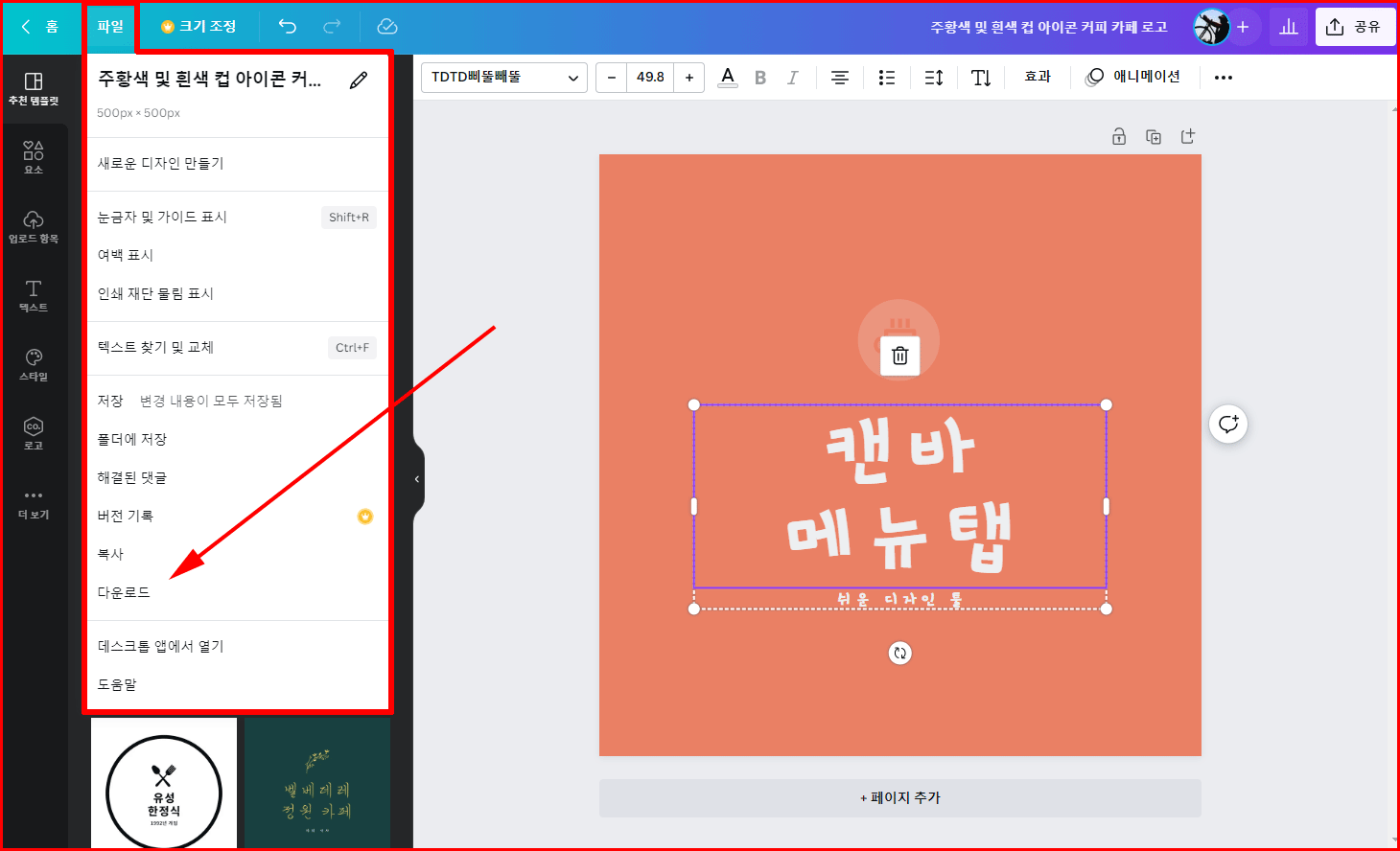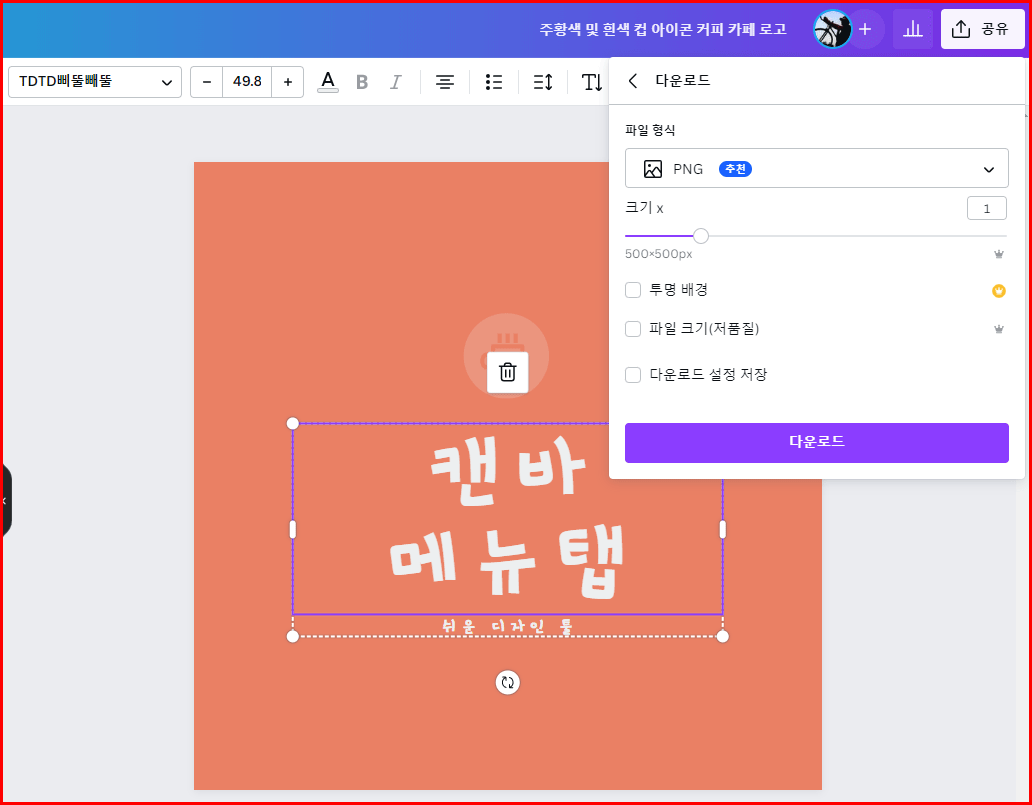 모든 디자인 작업을 마친 후 이미지를 다운로드합니다.
