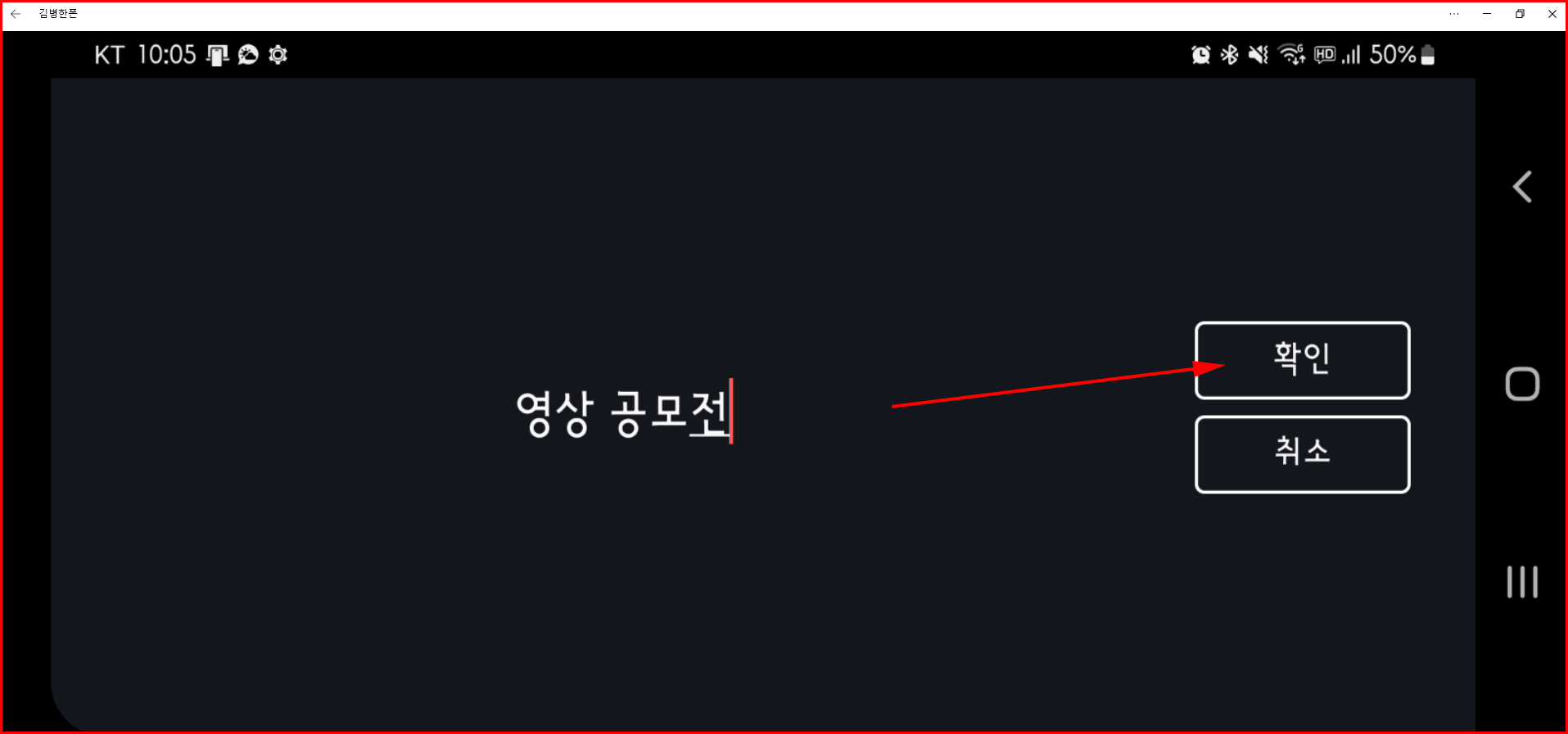 2. 글 작성: 제목으로 '영상 공모전'을 작성하고 '확인'을 누릅니다.