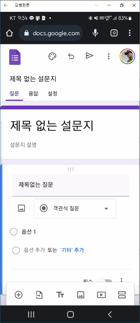 구글 설문 작성의 기본 환경은 데스크톱 버전입니다. 그러나 스마트폰에서 브라우저의 환경을 '데스크톱 사이트'로 맞춰 작성하면 PC에서 처럼 구글 설문 작성이 가능합니다.