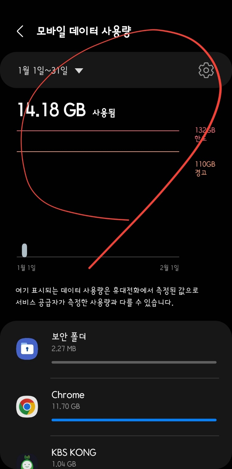 모바일 데이터 경고 설정