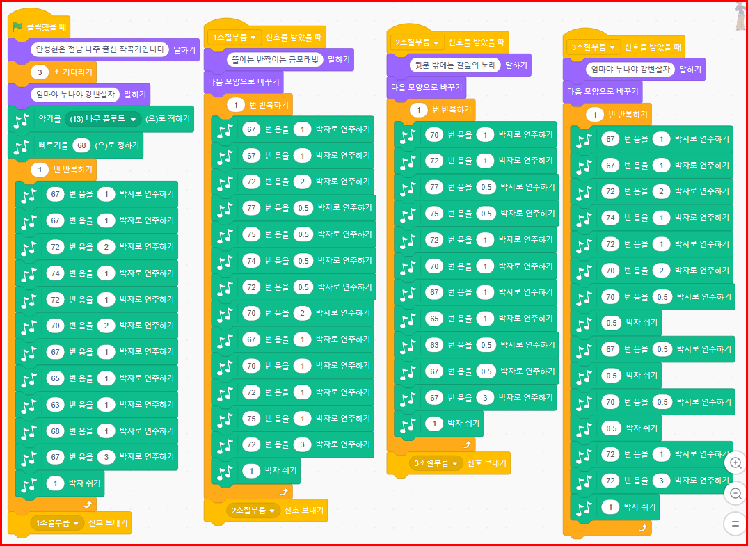[스크래치] 안성현 작곡 '엄마야 누나야' 코딩하기