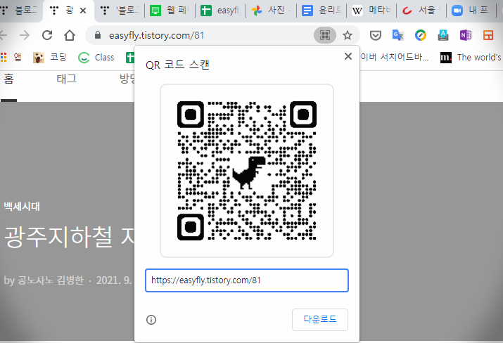 오늘은 블로그 페이지를 알리고 싶습니다. QR코드로. 요즘 기관 출입할 때 큐알코드를 출입인증을 하는 일이 많아지지 않았습니까. 큐알코드가 코로나 사태 이후 일반화되는 추세군요.