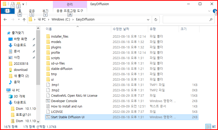 Easy Diffusion의 설치