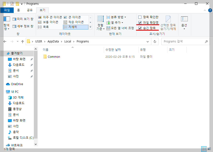 `AppData` 폴더는 기본적으로 숨겨져 있을 수 있으므로, 숨겨진 항목을 보려면 폴더 옵션을 변경해야 합니다.