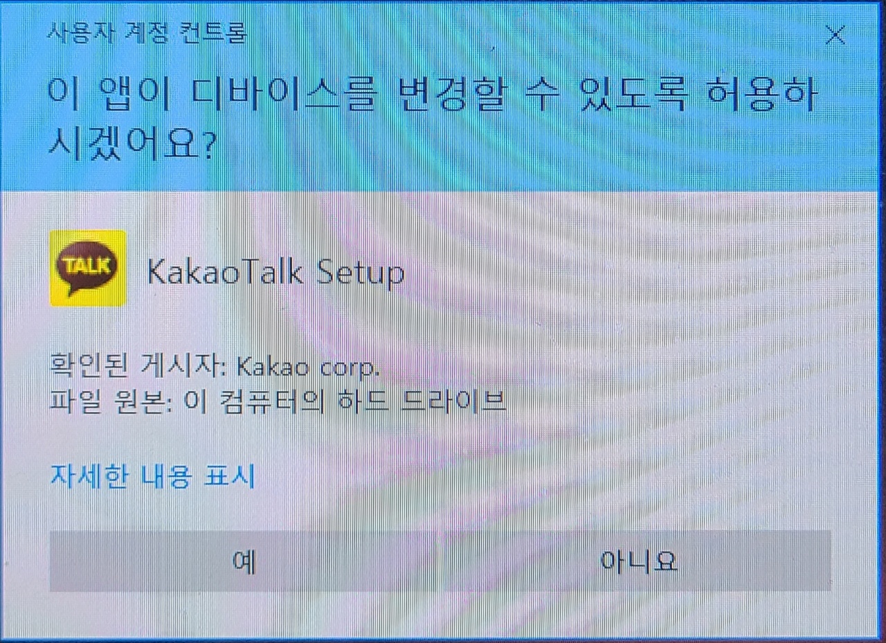 설치 파일을 실행하면 디바이스를 변경할 수 있다는 주의 창이 뜨고, 허용하겠다는 동의 의사를 표명하면 드디어 설치됩니다.